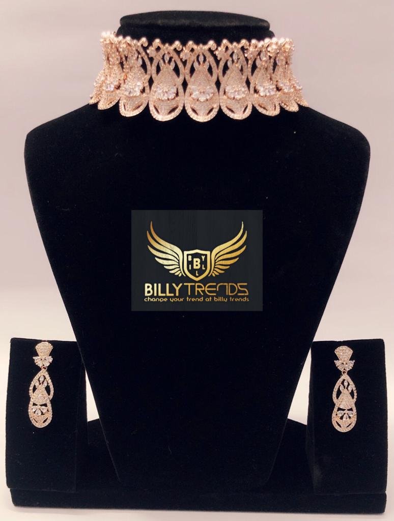 BILLY Trends Rose Gold CZ Studded With White AD Stunning Choker Set