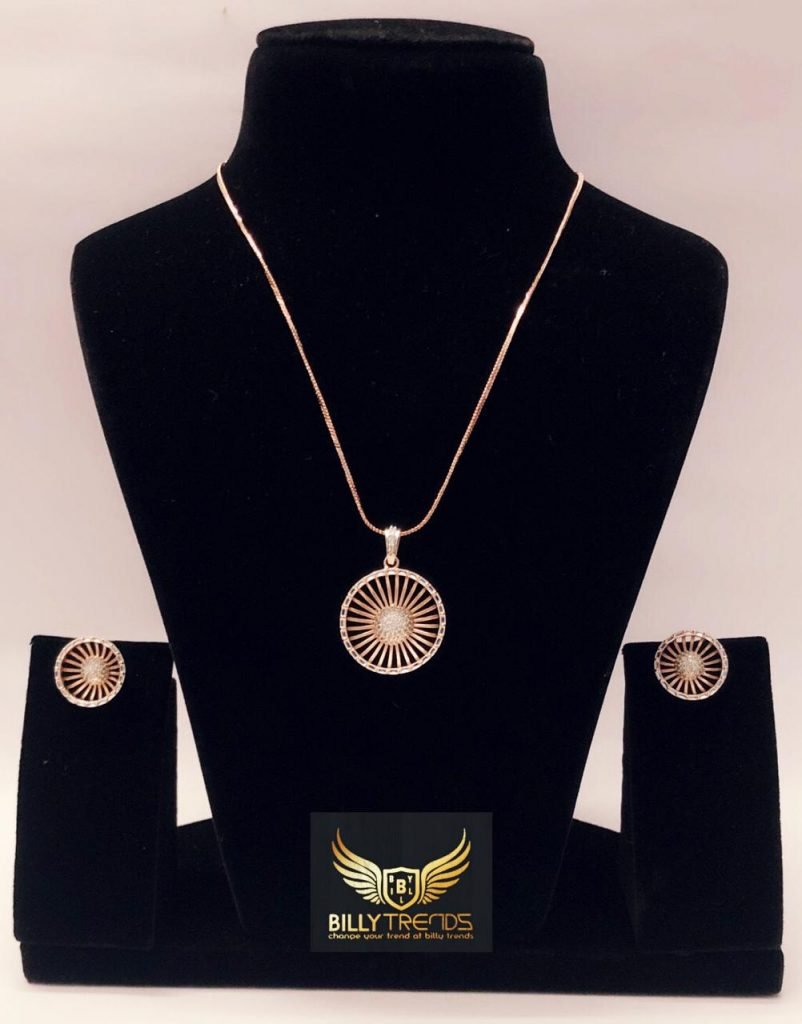 BILLY Trends American Diamond Rose Gold Plated Elegant Pendant Set with Chain