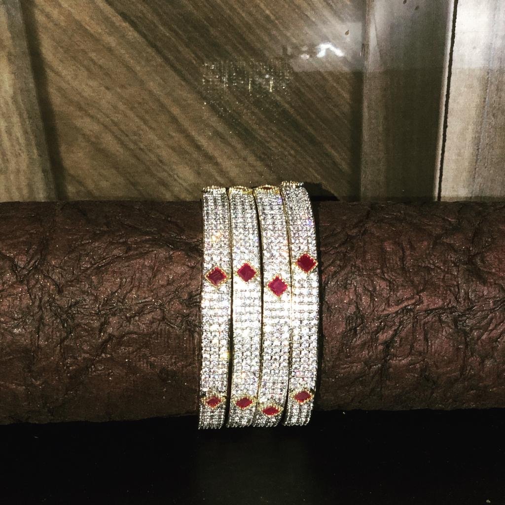 BILLY Trends CZ American Diamond And Ruby Bangle Set
