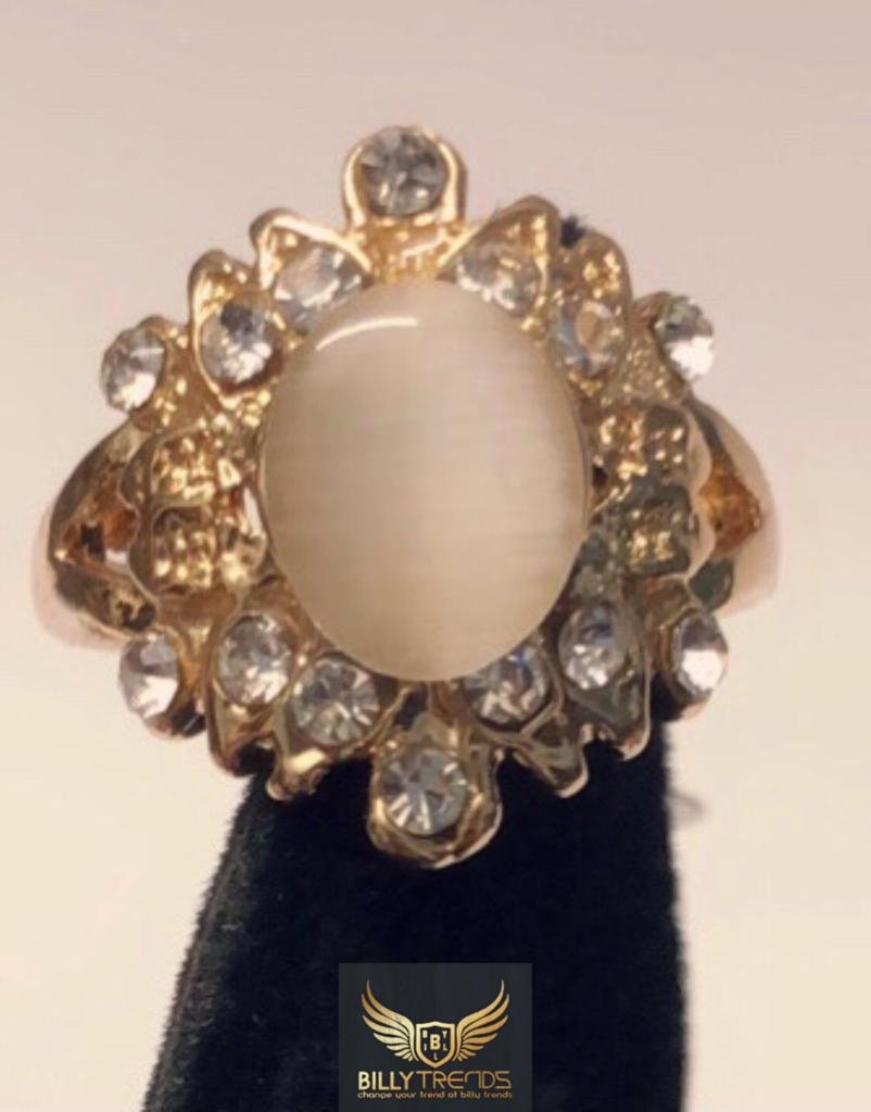 BILLY Trends Gold-Toned Oval Stone Studded Classic Finger Ring